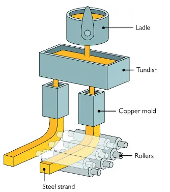 a) Distribution of hot steel from ladle into the individual strand