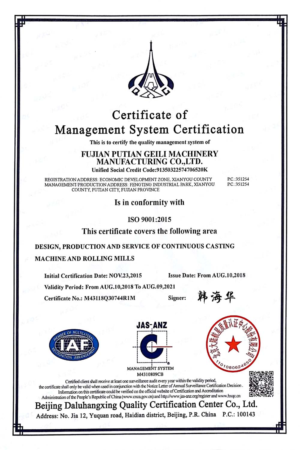 是成立于1995年,前身为仙游轧钢厂.2001年,与仙游邦头轧辊厂合并.2008年,我们专注于连铸和连轧生产线设备.2011年,公司改组成立福建莆田给力机械制造有限公司,哪一个从事冶金设备,主要在钢-使,连续铸造和完整的轧制生产线的研发,设计,制造业,安装和总承包服务.
