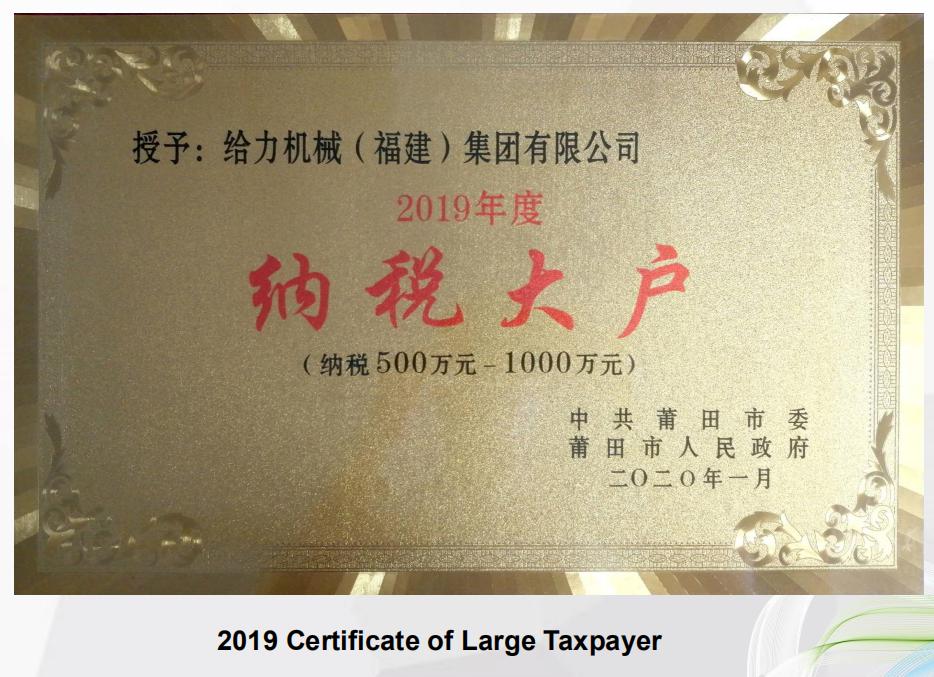 In March 2021, our company once again won the honorary title of "Xianyou County 2021 Large Taxpayer" awarded by the CPC Xianyou County Committee and Xianyou County People's Government. , This is the third time our company has won this award.